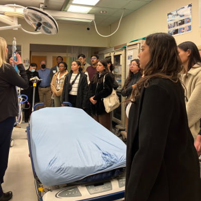 For Vinay Bhakthan, who will graduate in spring 2026 from the Bachelor’s to Accelerated Master’s program, the visit was eye-opening. “From coordinating nurse staffing levels and ensuring patient bed availability, to triaging critical cases to trauma rooms and overseeing room turnover after discharges, all while making sure the emergency department is following all regulations and organization policies is an immense task. Seeing these things in person gave me a clear perspective about the realities of the job,” said Bhakthan.
