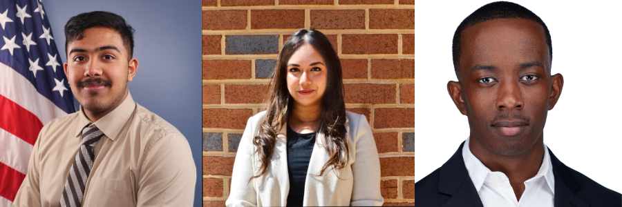 From left, MHA students Vinay Bhakthan, Pratyusha Satpathy, Taveion Mickens