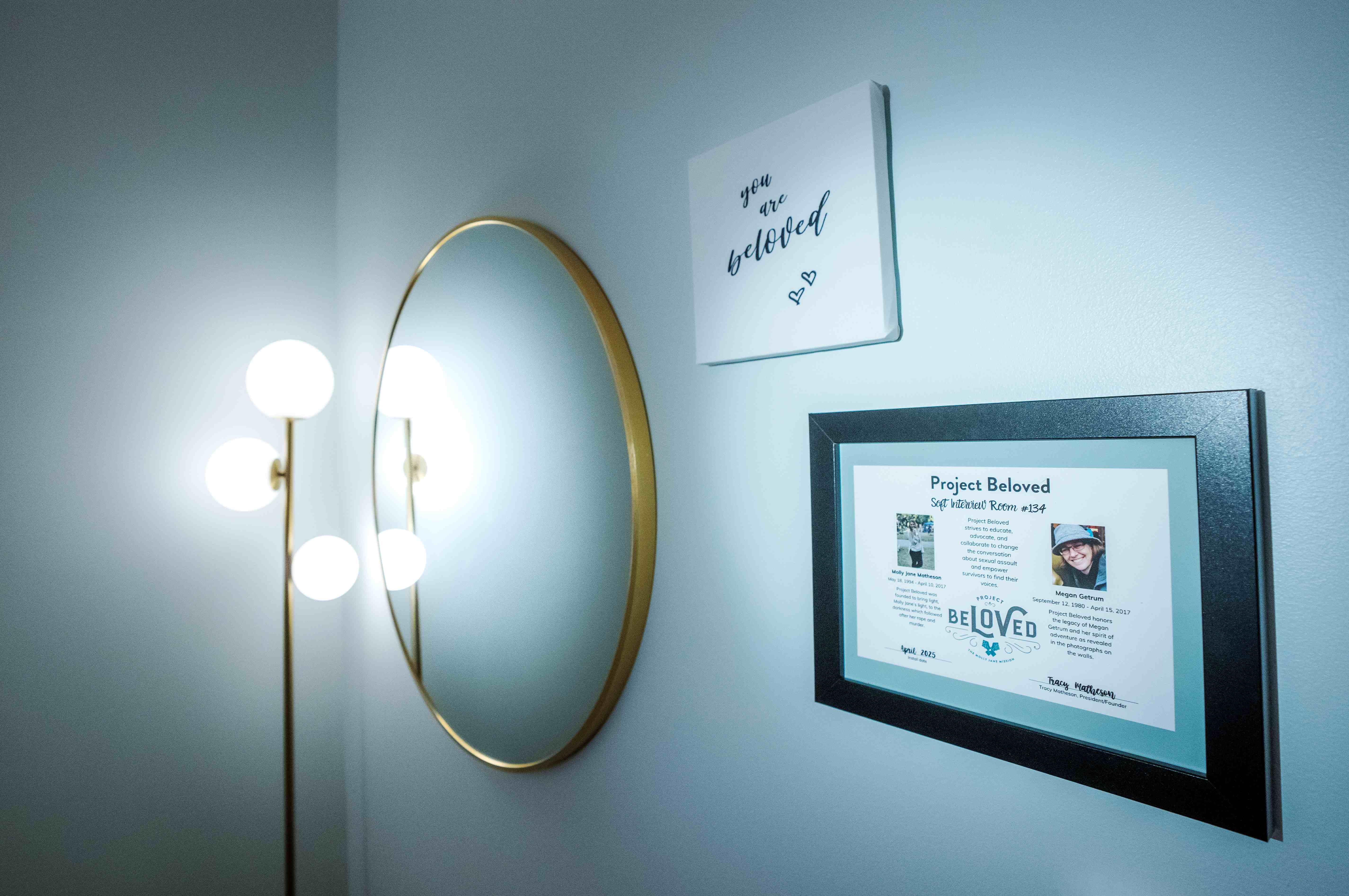 Small touches in the design of the space are meant to remind survivors of their worth. Each room includes a mirror next to a small canvas sign, which says "You Are Beloved." The message encourages survivors to remember those words as they look at their reflections.